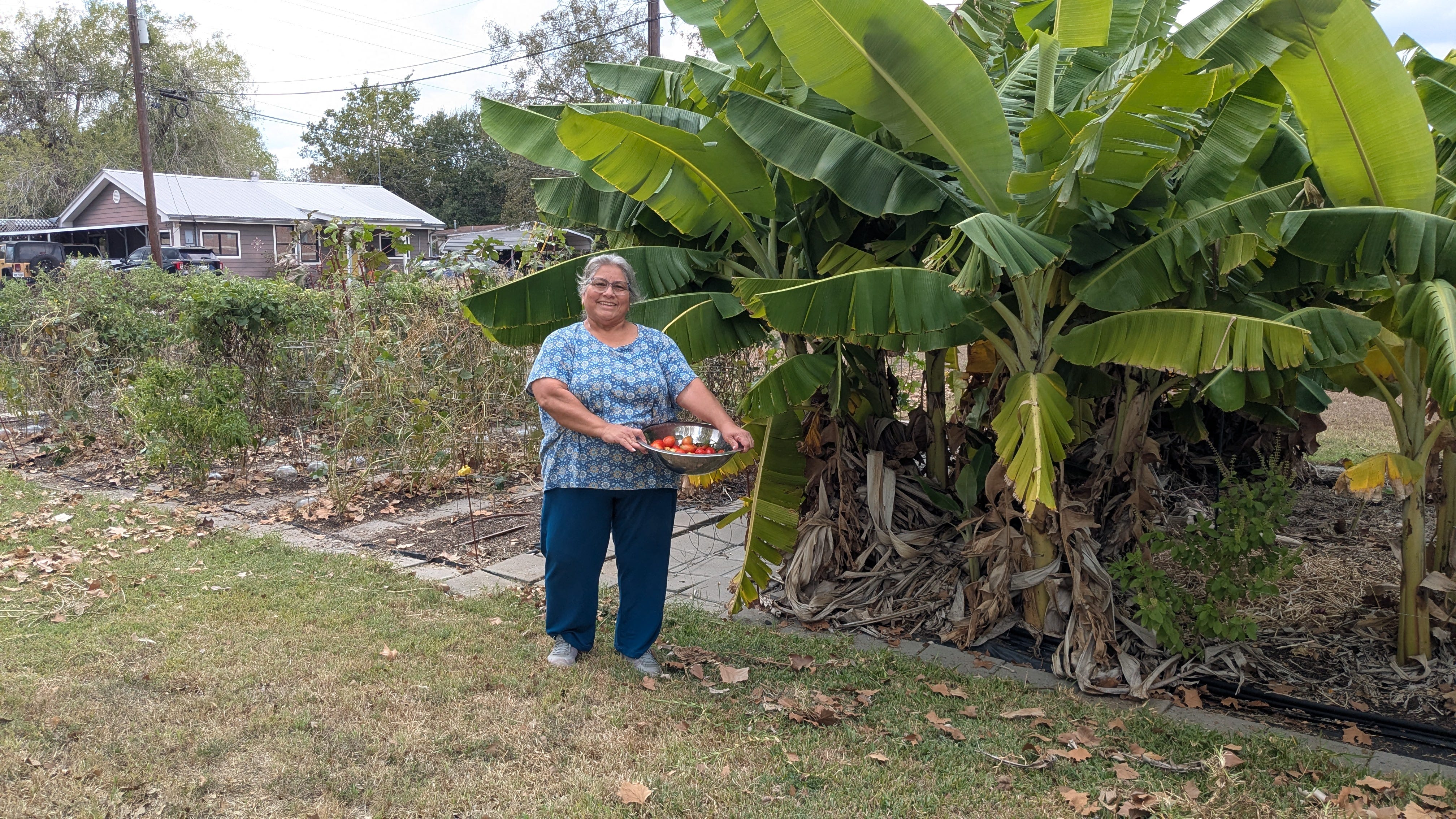 Adapting To Weather (took this picture of Jenny with late fall tomatoes)