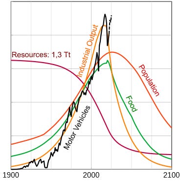 Professor Ugo Bardi looks for the global real economy inflection point with rigor. A New Calculation of Global Trends. Are we Close to Collapse? An update of the Limits to Growth model. Looking at Figure 1, which is based on the Nebel Group’s report, there should have been a significant slump in the global economy in 2025 or earlier. However, this slump did not occur. The global economy is in trouble, but there has been no slump in car sales, for example. The German economy has many problems, but life in Germany has so far been little affected by them.