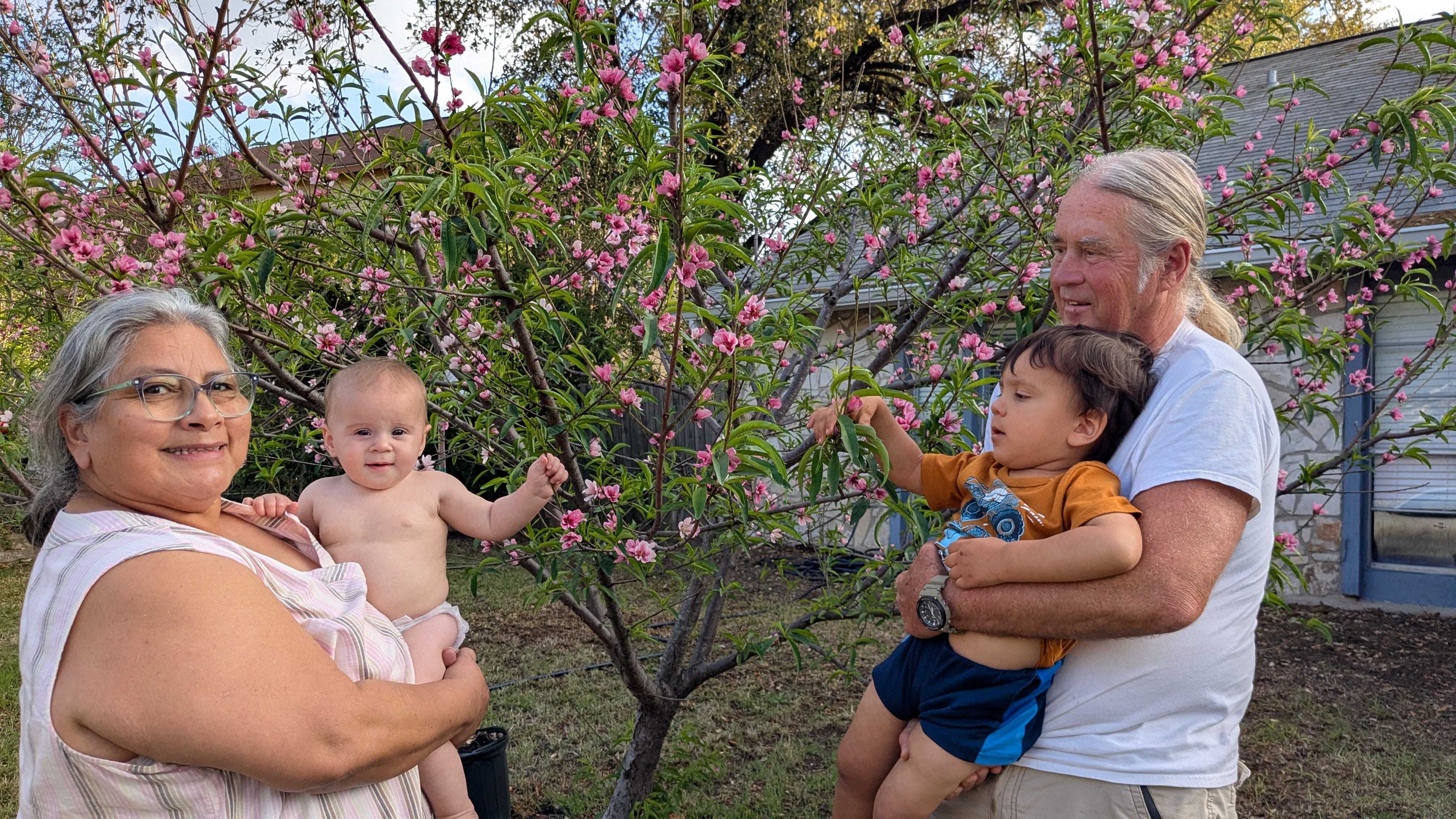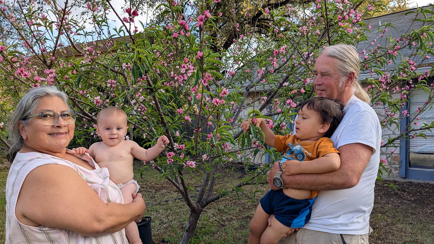 Appreciating Life (pictured with grandkids, Jenny, and a peach tree I planted)